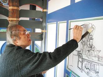 最后作畫身影 彩繪大師陳壽彝今年初為頂新集團彰化祖厝彩繪留下的身影,也是他留在民間最后的創作。圖片來源:臺灣《聯合報》