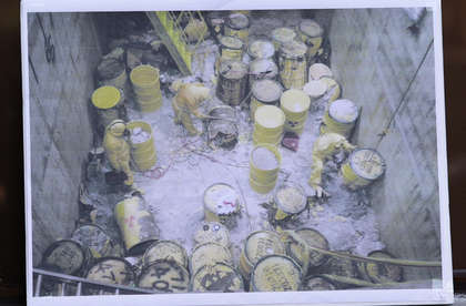 影片拍攝到部分核廢料儲存桶被嚴重腐蝕,甚至已經破裂,周圍環境看起來相當通風,沒有負壓處理,也沒在密閉的空間,這種情況下,只要風一吹,粉塵便四處飄揚,一旁工人直接暴露在輻射危險之下。不過,蔡春鴻說,廠區一直都配有負壓設備,可能是攝像機沒有拍到。