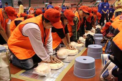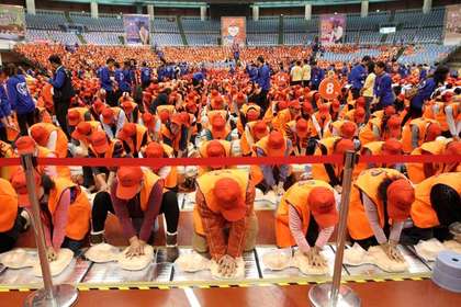 桃園縣上萬民眾在體育館挑戰吉尼斯世界紀錄。(圖片來自臺媒)