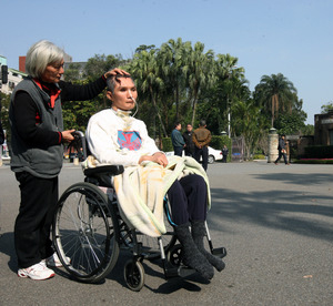 張振聲父母日前帶他重返臺(tái)大,希望臺(tái)大能承諾負(fù)起長(zhǎng)期照護(hù)的責(zé)任。圖片來自臺(tái)灣媒體