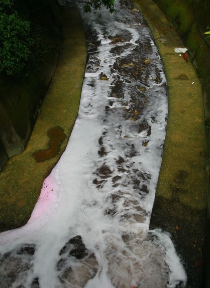 30年來工廠任意排放廢水,把干凈溪水染色。(圖片來自臺(tái)媒)