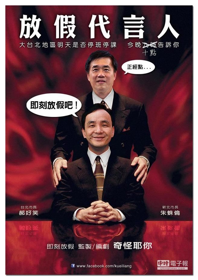 郝龍斌、朱立倫化身“放假代言人”。(來源:臺(tái)灣《中國時(shí)報(bào)》)