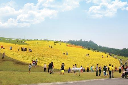 基隆市郊擁恒文創(chuàng)園區(qū)由10萬支風(fēng)車組合而成,長(zhǎng)、寬各80米的超大地景風(fēng)車大黃鴨隆重登場(chǎng)。(圖片來自臺(tái)媒)