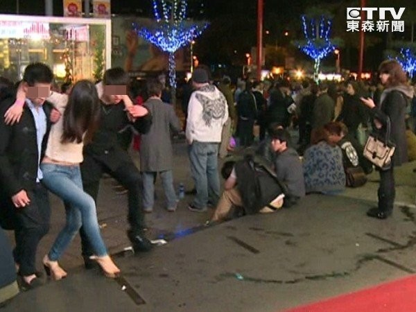 臺北瘋狂跨年夜行尸走肉 酒醉辣妹走光“撲街”。(臺媒圖)