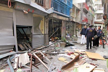 屋后方天花板被掀開,墻壁應聲倒塌磚塊飛散,正好買雞蛋準備返家的64歲楊姓男子經(jīng)過,楊男頭部、腿部被磚塊砸傷,現(xiàn)場血跡斑斑。