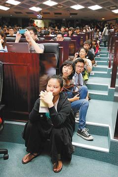 臺當局“經濟部”服貿校園講座吸引眾多聽眾,連走道都坐了一整排。(圖片來自臺媒)