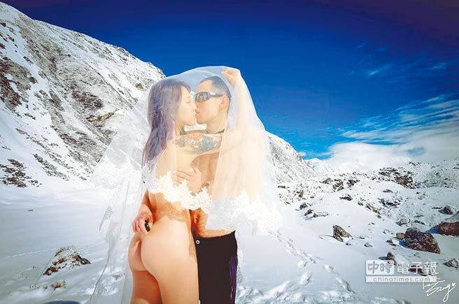 臺灣知名美女部落客“柳喪彪”,和老公跋涉至海拔5000多米的尼泊爾格吉?dú)W里(Gokyo Ri)舉行高山婚禮、拍攝全裸婚紗,沒想到遇到大地震,身上掛彩受傷。(圖片來源:臺灣《中國時(shí)報(bào)》)