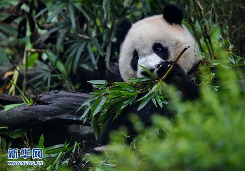 3月13日,大熊貓“圓仔”在吃竹葉。新華社記者 張國俊