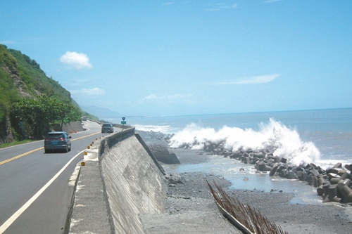 長(zhǎng)期研究東部海岸線變化的臺(tái)灣海洋大學(xué)副校長(zhǎng)許泰文發(fā)現(xiàn),2006年之前的50年間,臺(tái)東縣海岸退縮100至300公尺,且不斷持續(xù)中,加上全球暖化、海平面上升,“南回公路臨海路段被海水淹沒(méi),是早晚的事”。