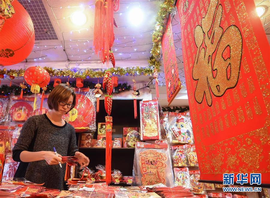 1月12日,在臺北市大同區,商家在店內整理年貨。春節臨近,臺北各大年貨市場進入旺季,不少市民前來選購各式年貨,喜迎佳節。(新華社記者 歐東衢 攝)