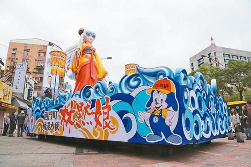 據臺灣《聯合報》報道,2017臺北燈節明天(4日)登場,首度移師西門紅樓,并在元宵節當天舉辦“西城嘉年華大游行”,總計60組、1500位表演者參加,最大亮點是8米高、10米長、5米寬的動漫版林默娘(媽祖)花車,昨天已悄悄在中華路亮相,吸引民眾爭相拍照。