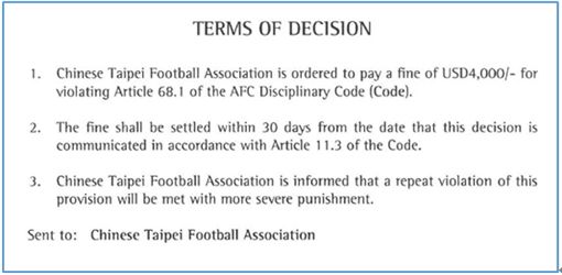 2016年亞足聯對臺灣處罰決定(臺灣三立新聞網截圖)
