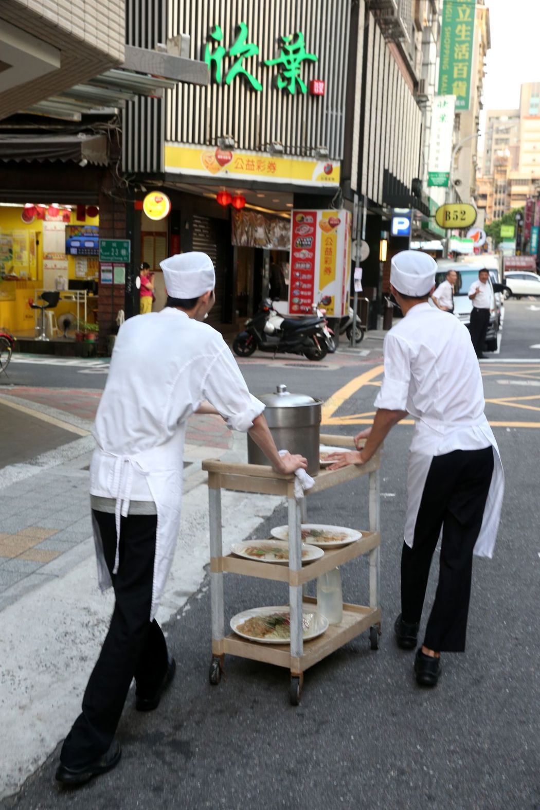 位于臺北市雙城街的一家知名餐廳也停電了,由于正逢晚餐前的準備時段,餐廳趕緊搬菜搬客人,把客人請到二十米外的另一個店面去用餐。(圖片來源:臺灣《聯(lián)合報》)
