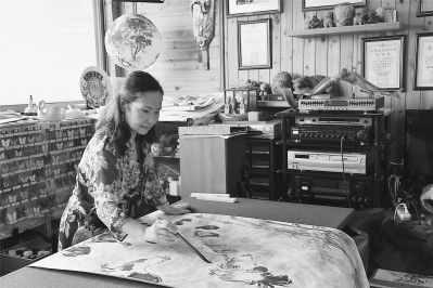 如此高超的絕技,許金葉自有她的“訣竅”。原來(lái),許金葉堅(jiān)持拜大自然為師,作品常常取之于自然,又還之于自然。為此,她常常往返兩岸,流連于鄉(xiāng)間小溪,跋涉于高山峻嶺,臨春風(fēng)、賞夏荷、望秋云、觀冬雪,從優(yōu)美的天然景色中,尋找創(chuàng)作靈感。