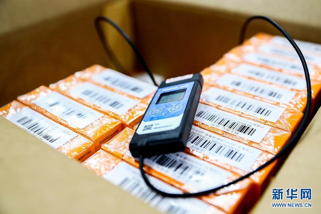 1月6日,在科興中維新冠病毒滅活疫苗成品冷庫內,每個裝有新冠病毒滅活疫苗成品的箱中都放有溫度連續監控及超溫報警設備。新華社記者 張玉薇 攝
