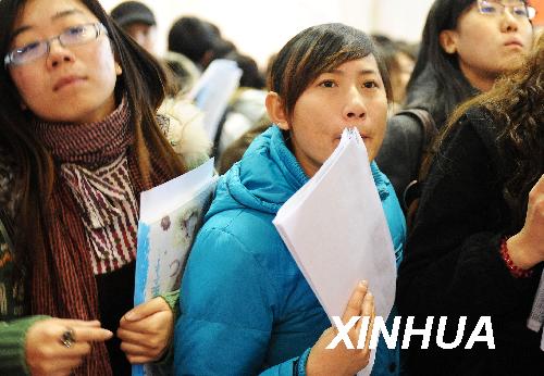 資料圖片:2008年11月29日,東北地區(qū)高師院校2009屆畢業(yè)生聯(lián)合供需見(jiàn)面洽談會(huì)在長(zhǎng)春舉行。新華社記者徐家軍攝
