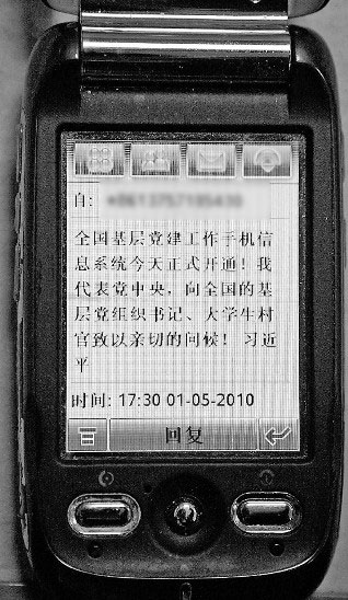 全國(guó)基層黨建工作手機(jī)信息系統(tǒng)昨(1月5日)正式開通,習(xí)近平向全國(guó)100萬(wàn)名基層黨組織書記、大學(xué)生“村官”發(fā)出問(wèn)候短信。系統(tǒng)收集匯總了全國(guó)100萬(wàn)名基層黨組織書記、大學(xué)生“村官”及省、市、縣黨委組織部長(zhǎng)手機(jī)號(hào)碼,通過(guò)手機(jī)短信互動(dòng),實(shí)現(xiàn)了中央組織部、省區(qū)市黨委組織部與基層黨組織書記、大學(xué)生“村官”之間快捷、及時(shí)、雙向、安全的聯(lián)系溝通,是運(yùn)用現(xiàn)代化手段加強(qiáng)黨的建設(shè)的一項(xiàng)新舉措。