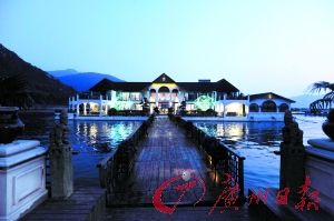 記者留意到,整個(gè)建筑多用實(shí)木構(gòu)建成,除花草字畫外,多處還陳列著各式各樣的古董收藏。郭奎章介紹,整個(gè)建筑約有7000平方米,共有4間客房,電纜、電視都由水下鋪設(shè)管道,從岸上引來。“包括整個(gè)建筑的給排水,我們都從海水下面的管道連接到市政管道里,不會(huì)產(chǎn)生對(duì)海域的污染。”