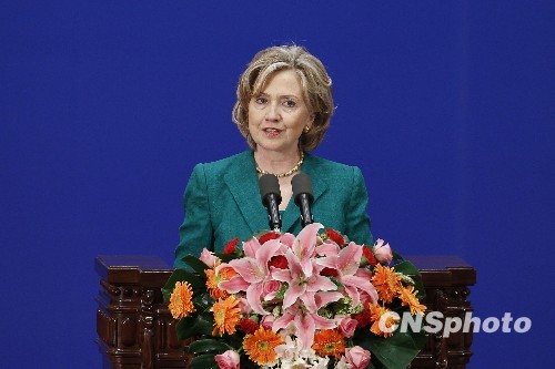 5月24日,第二輪中美戰(zhàn)略與經(jīng)濟(jì)對話在北京開幕,美國總統(tǒng)奧巴馬的特別代表、國務(wù)卿希拉里·克林頓出席開幕式并講話。 中新社發(fā) 盛佳鵬 攝