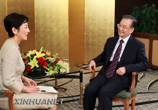 6月1日,中國國務(wù)院總理溫家寶在東京接受日本NHK電視臺專訪。新華社記者 龐興雷 攝