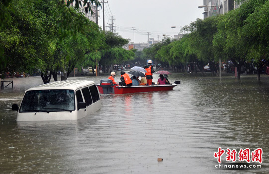 6月1日,廣西來賓市遭受54年未遇特大暴雨襲擊,損失慘重,市區多處被淹。中新社發 吳清文 攝
