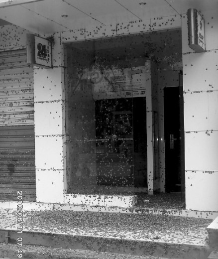 前晚8時許,巴城三號橋頭兩邊的電線桿上出現了一幕壯觀的景象———密密麻麻的類似飛蛾的蟲子在路燈周圍飛來飛去,遠遠一看,就像一個特大的蜂包,引來不少行人駐足圍觀。一些市民稱,他們在路過路燈的時候,還遭遇密集的飛蟲撲面。昨日上午7時40分,巴中市職業中學教師吳玉萍經過巴州區第六中學對面的一個自動取款機時,看到取款機上布滿了厚厚的幾層灰色的小蟲子的尸體。吳玉萍稱,看起來很恐怖。