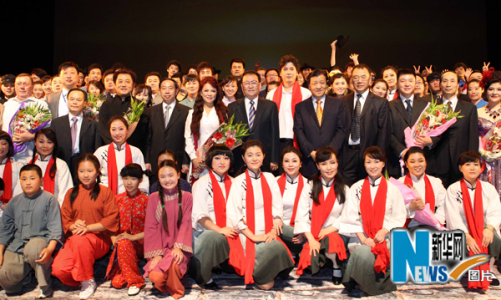 6月11日晚,由北京大學(xué)歌劇研究院與中國歌劇舞劇院聯(lián)合推出的大型原創(chuàng)歌劇《青春之歌》在國家大劇院上演,中共中央政治局常委李長春出席觀看。這是演出結(jié)束后,李長春與演員們合影。新華社記者 劉衛(wèi)兵 攝