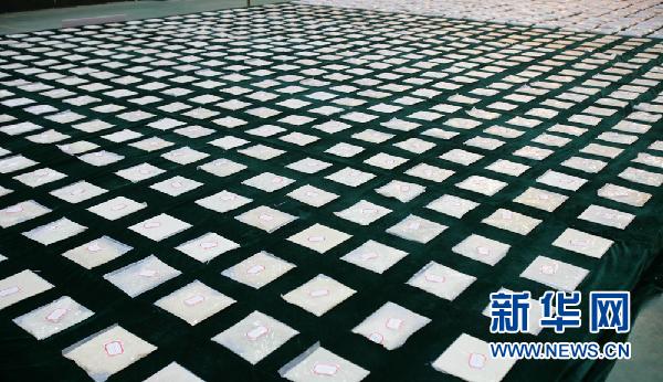 這是工作人員在展示查獲的巨額數量海洛因。新華社發