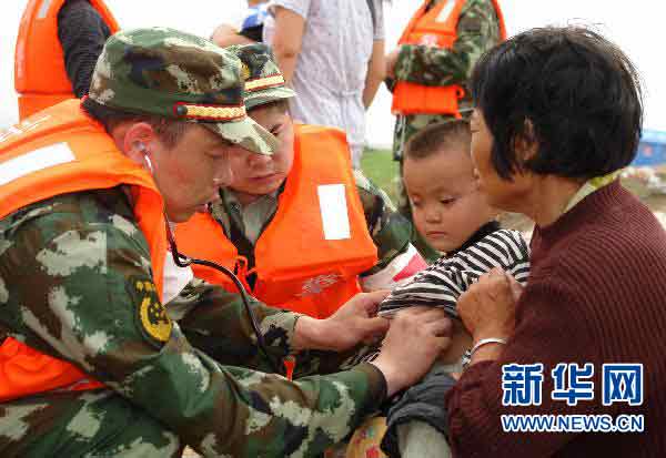 6月22日,武警醫(yī)療隊員在撫州臨川市唱凱鎮(zhèn)救治受傷的群眾。 6月24日開始,江西將再次出現(xiàn)強降雨。為確保群眾生命安全,防止群眾反復(fù)受災(zāi),22日下午開始,江西省加大撫河唱凱堤決堤災(zāi)區(qū)群眾轉(zhuǎn)移力度,眾多原來在自家二三層樓房自我安置的群眾,也將及時進(jìn)行轉(zhuǎn)移到戶外安全地帶。目前,江西已經(jīng)加大了人力和運輸工具的投入力度。新華社記者周科攝