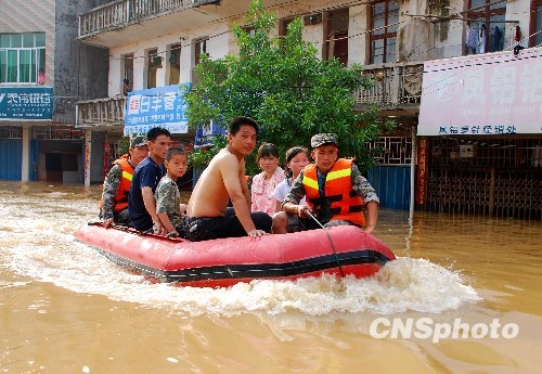 6月23日,南京軍區(qū)戰(zhàn)士繼續(xù)奮戰(zhàn),救助災(zāi)區(qū)群眾。江西第二大河撫河21日決堤,嚴(yán)重威脅下游5個鄉(xiāng)鎮(zhèn)14.5萬人口的安全,南京軍區(qū)戰(zhàn)士連續(xù)奮戰(zhàn)解救受困群眾。 中新社發(fā) 何柳斌 攝