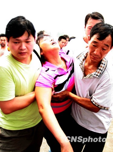 6月21日,河南平頂山,遇難者家屬在事故礦井旁痛不欲生,當日凌晨1時40分左右,平頂山市衛東區興東二礦發生井下火藥自燃爆炸事故。 中新社發 王中舉 攝