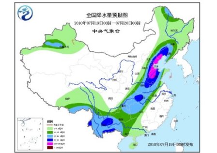 19日08時至20日08時,新疆北部、西藏東部、青海南部、陜西東南部、內蒙古東部、東北地區、華北大部、黃淮、江淮大部、江漢、江南西部、華南西部和南部、西南地區大部有小到中雨或陣雨,其中,重慶中東部、湖北大部、湖南北部、河南中東部、安徽北部、江蘇西北部、山東大部、河北中東部、天津、北京東部、遼寧中西部、黑龍江西北部以及西藏東南部、云南、貴州西南部和東北部、廣西西部、新疆天山西部等地有大雨或暴雨,山東西部、河北東部、天津東部、遼寧西南部等地的部分地區有大暴雨;上述局部地區并伴有短時雷雨大風等強對流天氣。新疆大部、甘肅西部、內蒙古中部、東北等地有4~6級風,新疆山口地區風力可達8級。渤海有6~7級,陣風8~9級的旋轉風;黃海中北部有6~7級偏南風;黃海南部、東海北部有5~6級東南風;南海東北部有5~6級東南風;南海東部和中部有5~6級旋轉風。