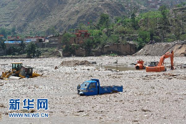 這是舟曲縣被泥石流淹沒的機械設備和車輛(8月8日攝)。 8月7日22時許,甘南藏族自治州舟曲縣突降強降雨,縣城北面的羅家峪、三眼峪泥石流下泄,由北向南沖向縣城,造成沿河房屋被沖毀,泥石流阻斷白龍江、形成堰塞湖。截至當日16時統(tǒng)計,泥石流災害已造成127人死亡,76人受傷,近2000人失蹤,緊急轉移安置4.5萬人,倒塌房屋120余戶300余間。新華社發(fā)