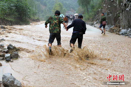 8月12日,甘肅省天水、隴南等地連遭暴雨襲擊,316國道沿線大山壩、麻沿鄉(xiāng)、篩子壩等多處通訊光纜被山洪沖斷,公路40余處出現(xiàn)滑坡、泥石流,通信、交通、電力中斷。目前,工程搶險(xiǎn)隊(duì)正加緊搶修。中新社發(fā) 陳文 攝