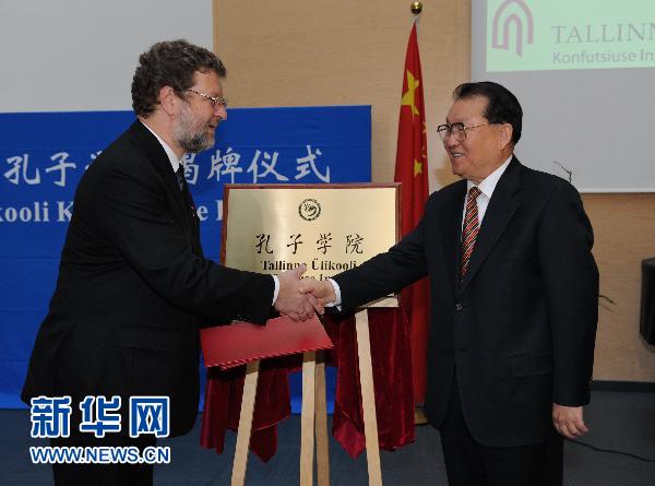 當地時間22日下午,中共中央政治局常委李長春出席了塔林大學孔子學院揭牌儀式。