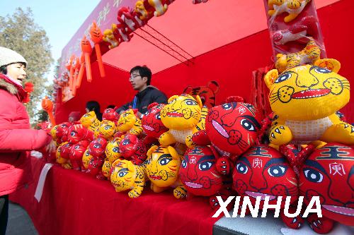 資料圖片:2010年2月13日,游人在北京地壇公園廟會(huì)選購(gòu)吉祥虎。農(nóng)歷虎年即將來(lái)臨,各種虎主題玩具成為春節(jié)廟會(huì)上的寵兒。新華社發(fā)(陳曉根 攝)