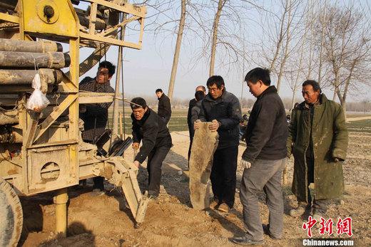 圖為山東省成武縣抗旱打井服務隊正在地頭打井,為實現(xiàn)“以河補源、以井保豐”奠定基礎。楊東亮 攝