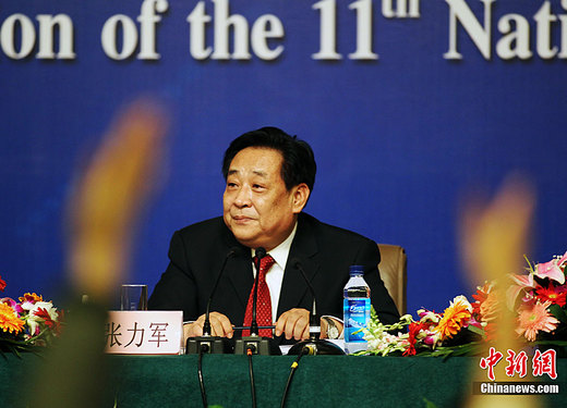 3月12日上午,十一屆全國人大四次會議舉行“加強環境保護”記者會。圖為環境保護部副部長張力軍回答記者提問。中新社發 王中舉 攝