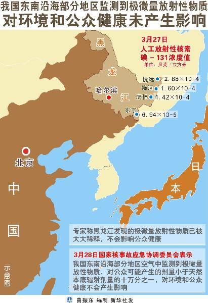 圖表:我國(guó)東南沿海部分地區(qū)監(jiān)測(cè)到極微量放射性物質(zhì) 新華社發(fā)