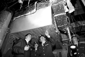 4月25日,海淀燕山大飯店,消防人員突擊檢查涉嫌違規改建的地下一層。當日,針對大興18死的重大事故,全市開展消防隱患排查治理。記者 浦峰 攝