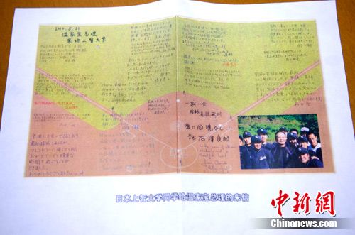 3年級學生崛靜香是15名受邀學生中之一,這不僅是她第一次中國之旅,也是她第一次參觀世博。上海世博的精彩給她留下了深刻印象。抱著向溫家寶表達感謝的想法,上智大學的學生們集體寫了這封信。