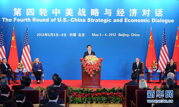 5月3日,國家主席胡錦濤在北京出席第四輪中美戰略與經濟對話開幕式并致辭。 新華社記者 謝環馳 攝