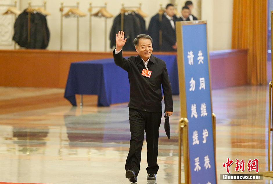 會前,交通運輸部部長楊傳堂經過人民大會堂“部長通道”時同記者打招呼。 中新社記者 杜洋 攝