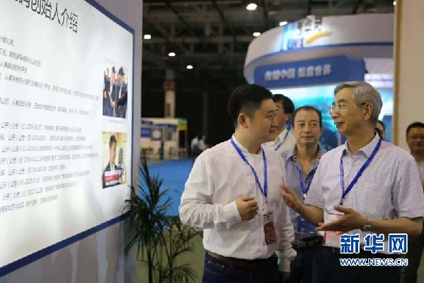 三維碼的興起,也引起不少專家的關(guān)注。圖為中國(guó)工程院院士倪光南在某展會(huì)上與陳繩旭互動(dòng)。