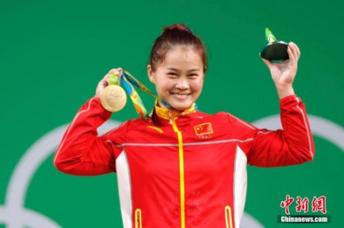 里約奧運會女子舉重63公斤級A組比賽,中國選手鄧薇獲得冠軍。中新網(wǎng)記者 盛佳鵬 攝