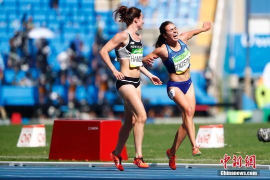 資料圖:新西蘭選手漢布林攙扶美國選手達戈斯蒂諾在賽道上前行。 中新網記者 富田 攝