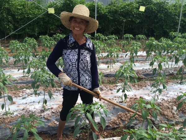 李考鳳,興國縣杰村鄉含田村的村民,見到她時,正在蔬菜大棚里勞作。被問及如今的生活,她一下打開了話匣子:“以前種地只夠家里吃,沒什么收入,現在農閑時在這兒種菜,一個月有1800多元呢”。她樸實的笑容讓人感到一陣溫暖。