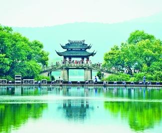 9月7日,游客在杭州西湖曲院風(fēng)荷景點(diǎn)參觀G20峰會(huì)文藝演出《最憶是杭州》的場地。光明圖片/視覺中國
