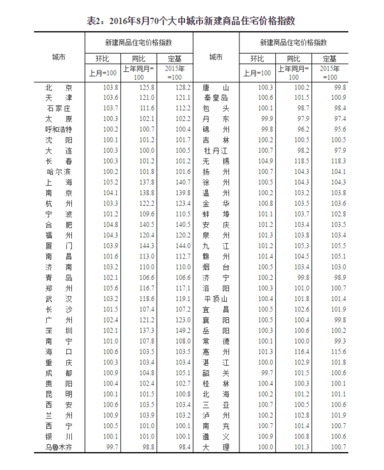 (二)與上年同月相比,70個(gè)大中城市中,價(jià)格下降的城市有16個(gè),上漲的城市有53個(gè),持平的城市有1個(gè)。8月份,同比價(jià)格變動(dòng)中,最高漲幅為46.9%,最低為下降4.4%。