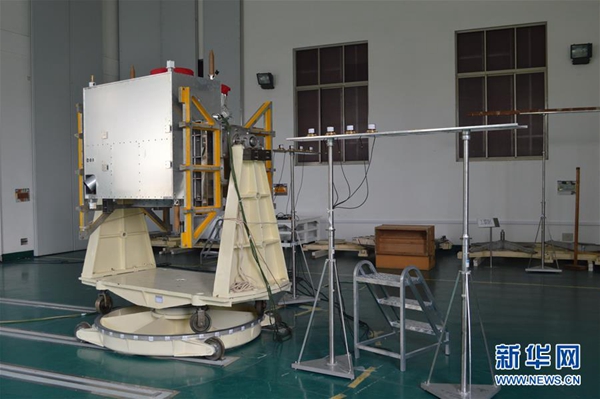 資料圖片:這是在812所進行磁測試的量子衛星(2014年12月2日攝)。新華社發(中科院微小衛星創新研究院供圖)